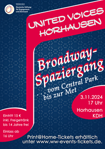 Viel besser! Die United Voices bitten die Gäste des diesjährigen Jahreskonzertes zum gemeinsamen Schlendern über den Broadway: vorbei an den besonderen Orten von New York wie der Metropolitan Opera, dem Central Park, aber auch Ground Zero. Mit „Big Apple“ – wie New York ja auch genannt wird - verbindet Jeder bestimmte Melodien aus Musical, Pop und einem ganz kleinen bisschen Schlager. Sehr bekannte Stücke werden also nicht fehlen, doch sind auch Lieder dabei, die den Zuhörern neu sein dürften. Ein vielfältiges Repertoire hat der Chor dieses Jahr erarbeitet und wurde dabei von mehreren neuen Mitgliedern stark unterstützt. Die „Neuen“, die erst seit den Gesangsworkshops im August mit von der United Voices-Partie sind, singen noch nicht mit, verstärken aber beim Kuchenverkauf und an der Hotdog-Theke. Für die kleine Abwechslung zwischendurch wird Piri-piri sorgen, denn die Trommeltruppe aus Koblenz wird mit einem ganz anderen Sound überzeugen, womit das Konzertprogramm so vielseitig sein wird wie die Großstadt am Hudson. Wer also mit spazieren will, findet sich zum Start mit Kaffee/Kuchen am 3. November um 16 Uhr, zum Konzert um 17 Uhr im KDH in Horhausen ein.
